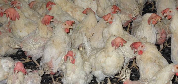 Les poussins sont élevés sans aucun contact avec leur mère, en groupes de quelques milliers d’individus tous du même âge : il n’y a pas de poules ou coqs adultes avec eux.
