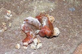– Excréments colorés brun/rouge contenant éventuellement des morceaux de sang.